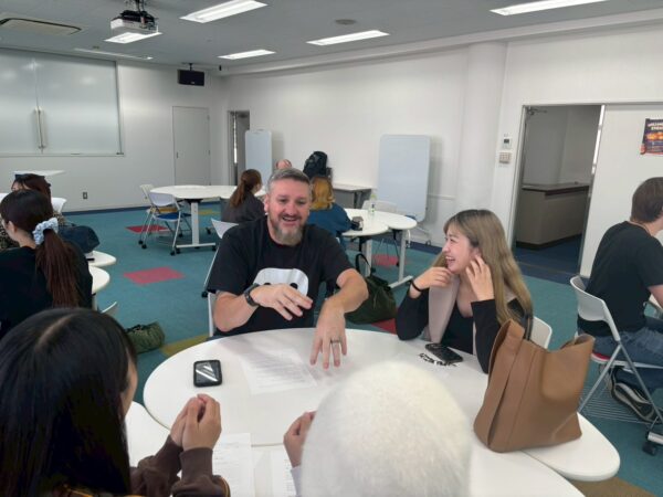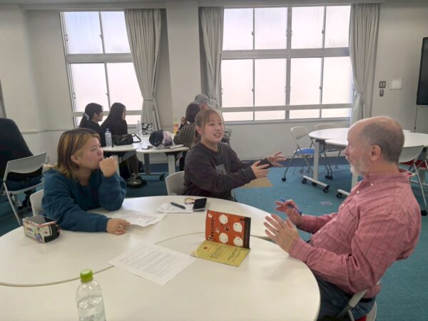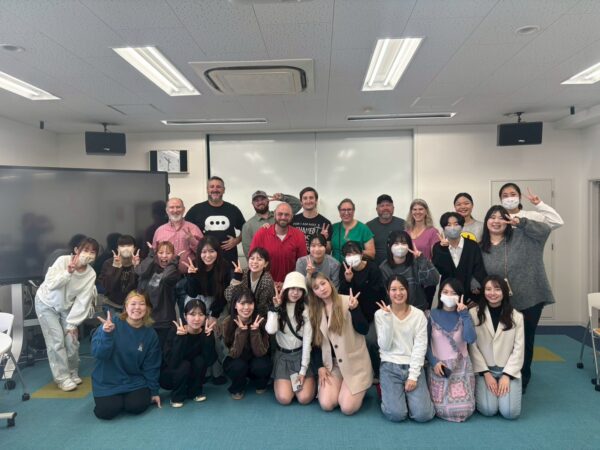 We welcomed eight American guests to our Introduction to English Linguistics class. We discussed American and Japanese cultures in English, gaining a deeper understanding of each other. It was a very enjoyable time in a warm and friendly atmosphere. We look forward to seeing them again next year!