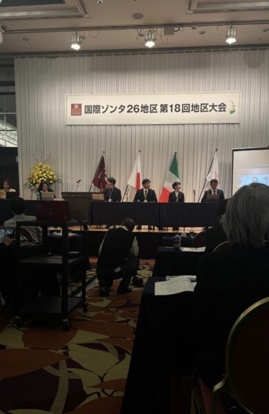 10月25日(土)、徳島県で開催された「国際ゾンタ26地区第18回地区大会」に参加しました。この大会は、女性の地位向上と社会貢献を推進する国際ゾンタの日本全体の会員が一堂に会し、知見を共有し議論する重要な場です。記念講演では、変化に柔軟に対応し挑戦を続ける姿勢の重要性を学び、ユース会員&男性会員サミットでは、世代や性別を超えた協働の在り方をテーマに議論し、実践的な視点を得ることができました。私たちは西南女学院大学ゴールデンZクラブの代表として活動報告を行い、他大学の発表や交流を通して多くの刺激と学びを得ることができました。