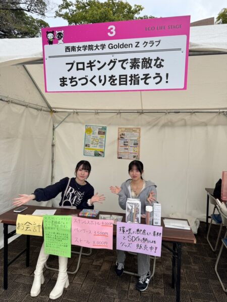 On the 8th and 9th of November, the “Eco Life Stage” event was held around Kokura Castle! The Golden Z Club also had a booth, selling stoles, pencil cases, and stainless steel bottles made by the Kitakyushu Zonta Club using Kokura-ori fabric in SDGs colours. We were delighted that those who showed interest in our products purchased them! Knowing the proceeds will support activities aiding women and girls made explaining the items while selling them a valuable experience.