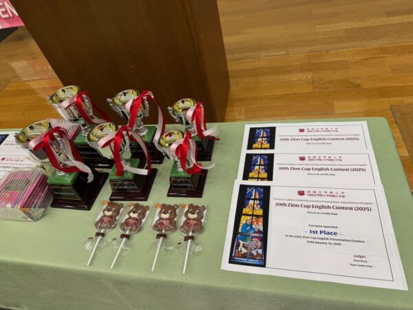On January 19, we held our 20th Zion Cup English Contest. For Year 1 students, we held a recitation contest while Years 2 and 3 students took part in a presentation contest. Preliminary contests were held in classes in December, and the final contest was held yesterday. Here are the results:
