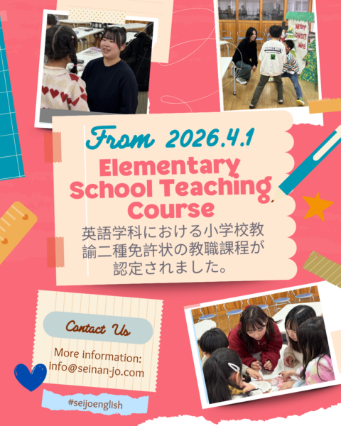 文部科学省に申請しておりました、英語学科における「小学校教諭二種免許状」の教職課程につきまして、2025年12月22日付で認定されました。