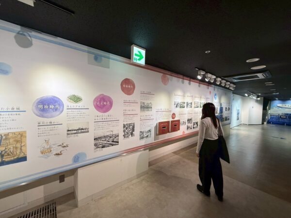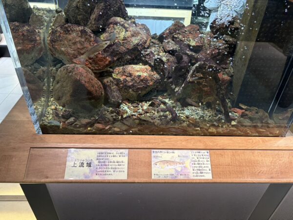 Today, I went to the Kitakyushu Water Environment Museum in Kokura for a fieldwork class in my education volunteer course. This place is a museum where we can learn about the history and water environment of the Murasaki River. Admission is free, but the exhibits were very interesting and better than I expected. Inside, there are many fish and living things from the river. They are shown by area, so it is easy to understand where each animal lives. The most impressive part was a big glass window where we could see the real river. It was not a tank, but the actual river. I could see wild fish swimming there. It was a rare experience, and I learned that the river I usually see has many living things inside. Also, I learned about the past of the Murasaki River and how people are trying to make the water cleaner. It was not only fun, but it also made me think about the importance of protecting nature. I think this fieldwork was a very meaningful experience. Through this visit, I learned more about the Murasaki River. It also made me want to pay more attention to nature around me. Even a normal river can be very interesting if we look at it in a different way. (Nanami S. 英語学科3年生)