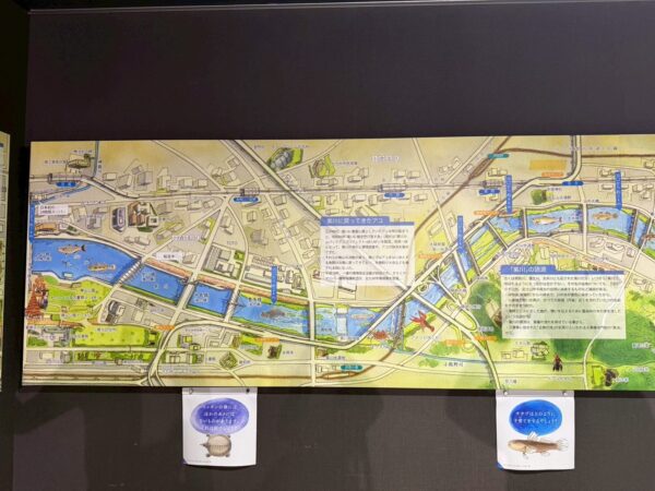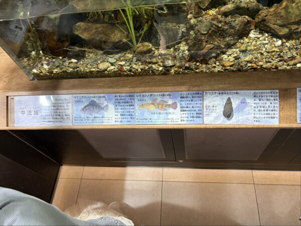Today, I went on a fieldwork activity for my educational volunteer class to the Kitakyushu Water Environment Museum! This facility lets you learn about the history and ecosystem of the Murasakigawa. You can also see river creatures for free, and the exhibits are organized by habitat, making it feel like a small aquarium—both adults and children can enjoy it. What impressed me the most was the large glass window where we could actually observe the real river. I was able to see natural fish swimming, which was really interesting. It was a great experience where I could learn about Kokura and also enjoy learning about living things!✨ (Nene S. 英語学科3年生)